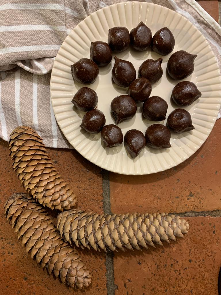 Se per riafferrare un sapore antico utilizzassimo la farina di marroni essiccata in graticci riposti all’interno di seccatoi alimentati con fuoco di castagno, la mescolassimo con 4 cucchiai di miele di tiglio, 2 cucchiai di farina di cocco, 2 tazzine da caffè di cacao amaro in polvere, una di olio di cocco, e se chiudessimo gli occhi, impastassimo fino ad ottenere un composto omogeneo, se formassimo delle piccole palline da riporre in frigorifero per una notte, se il sabato mattina appena svegli, dopo essersi messi i calzettoni di spugna, il pantaloncino da corsa e la maglietta tecnica traspirante, corressimo mezz’ora in estrema libertà nello sterrato che volge sui campi e affaccia sui folti ciuffi verdi, adesso gialli e rossi che si preparano per andarsene via con l’autunno, se dopo averlo fatto ci sentissimo così bene, quella sensazione di benessere che facilmente si spiega in due righe, ne servirebbero almeno tre ma poi perderebbe di sapore alla fine della seconda. Se dopo tutto questo da fare ci sedessimo, versassimo un caffè in tazzina lo macchiassimo freddo a soia o avena e chiudessimo gli occhi, un morso piccolo, un altro un po’ più intenso, proprio deciso anzi, e finissimo addentando quel piccolo marrone scuro, ecco, adesso, sempre ad occhi chiusi, riusciremmo a sentire in un attimo il sapore antico della toscana, perdersi nelle foglie bagnate, nelle scarpe che corrono sincroniche, nella ghiaia verso i campi, nel fresco sterrato e bagnato, nel bosco sotto casa?